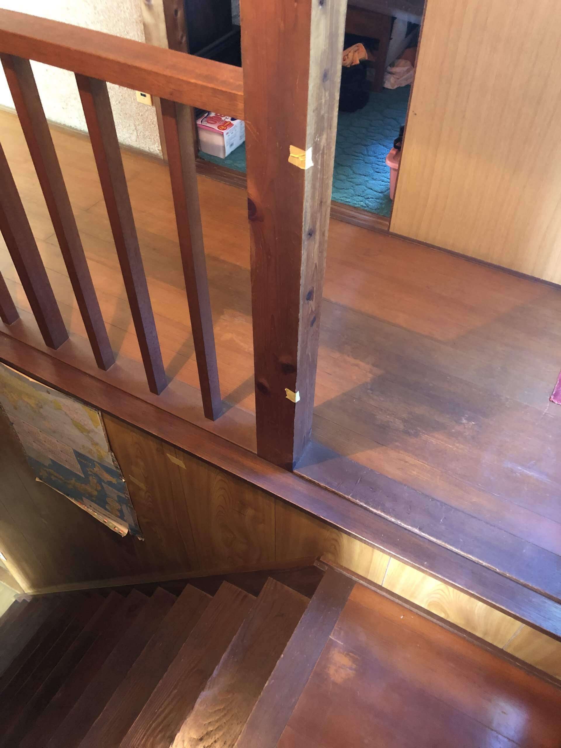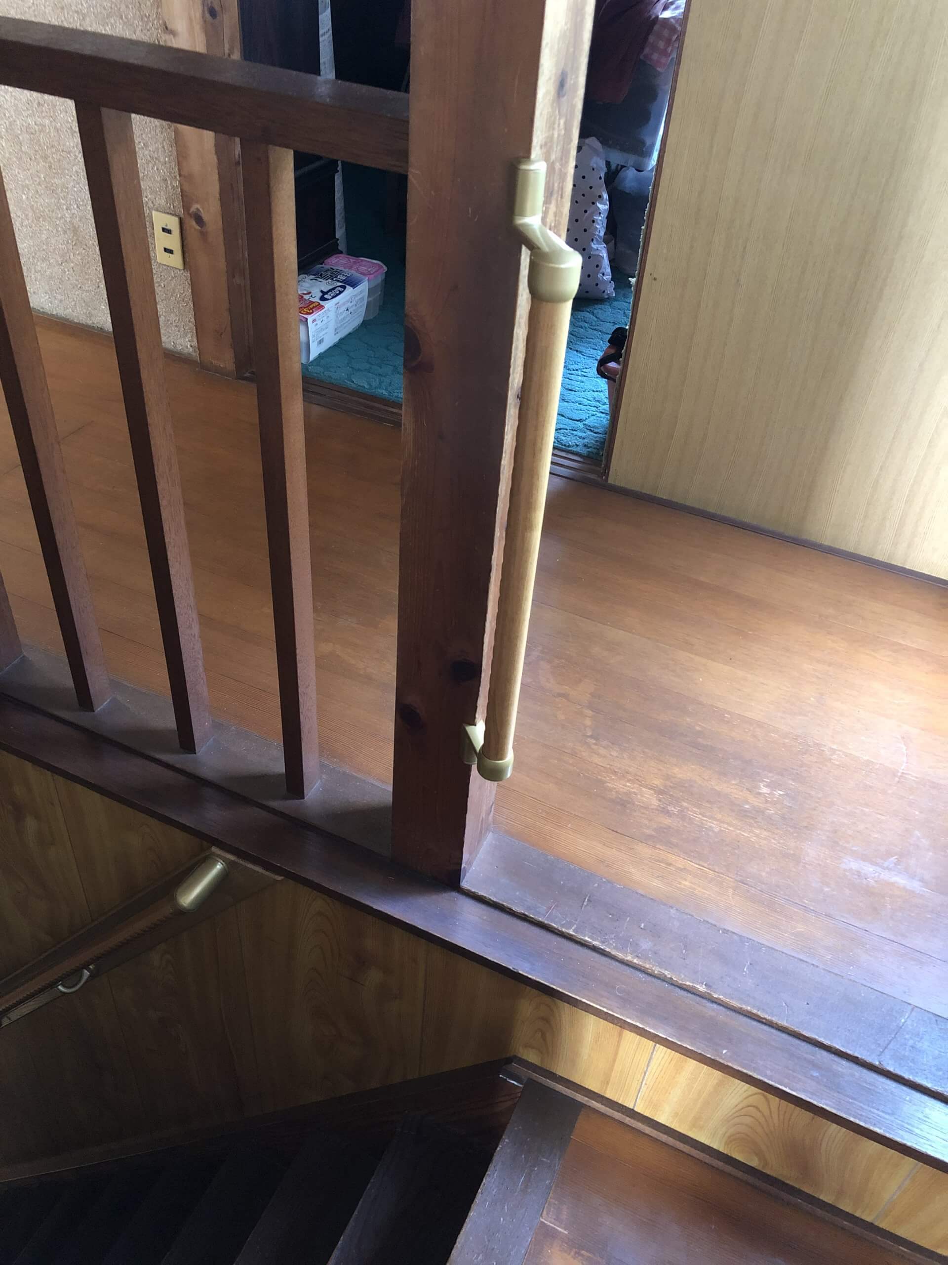 階段の上がりきった所に手すりを取り付けることで、転倒や転落の心配なく、安心して上がり下りができるようになりました。