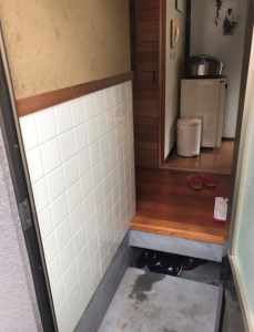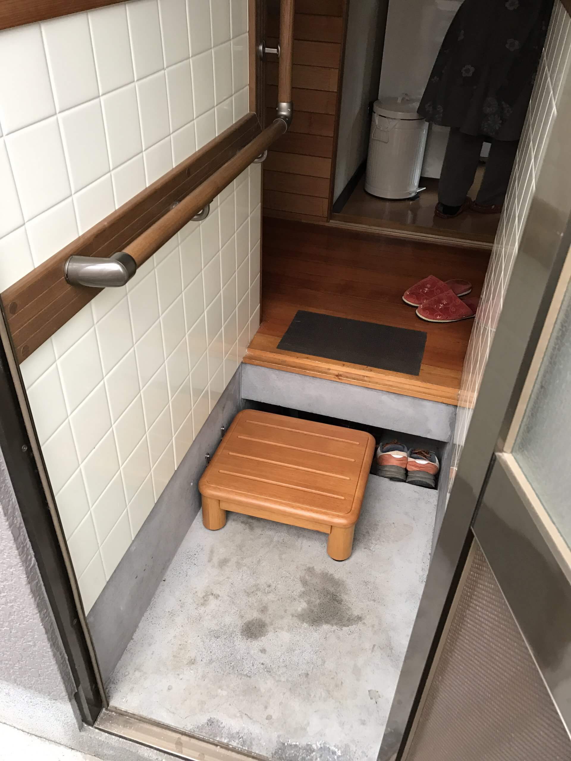ゴミ出しをする際に勝手口から出入りをしており、ご本人の身長が140㎝ほどしかなく段差昇降に苦労されていたため、手すりと踏み台を取付けました。